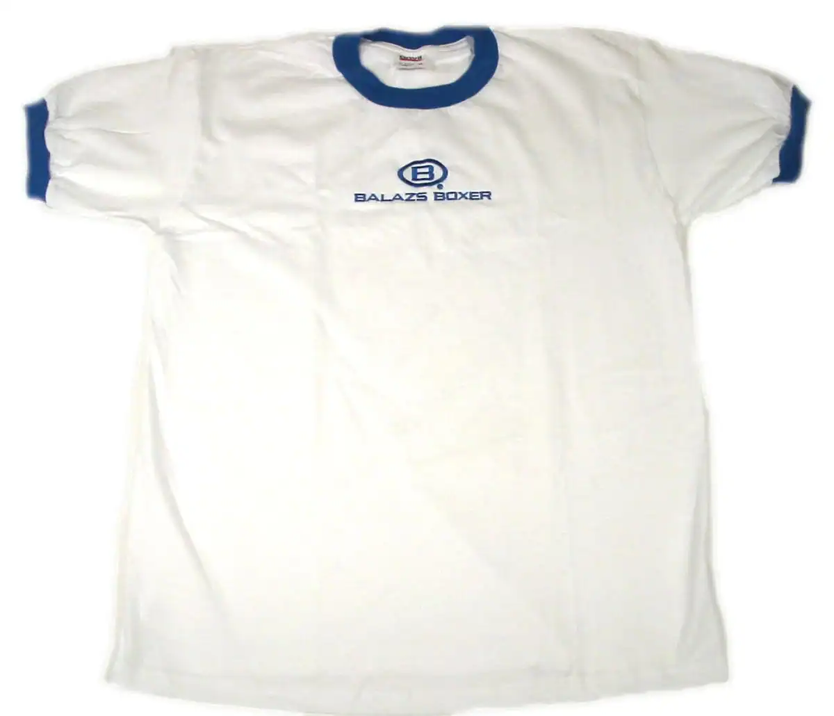 Cotton Boxer T-Shirt in White/Blue and White/Red with Balazs® Logo.