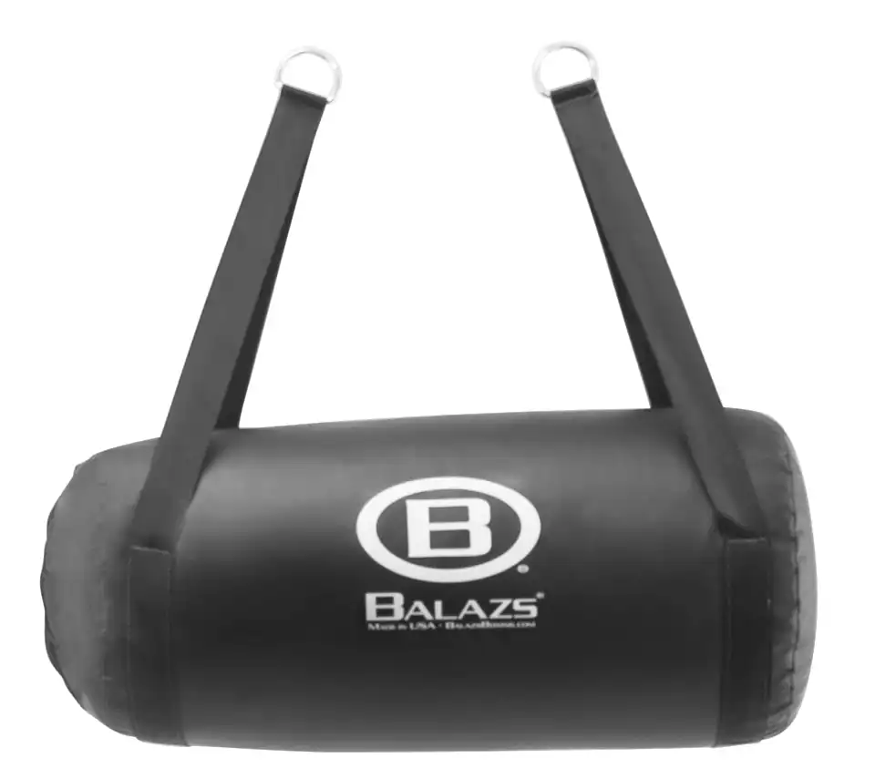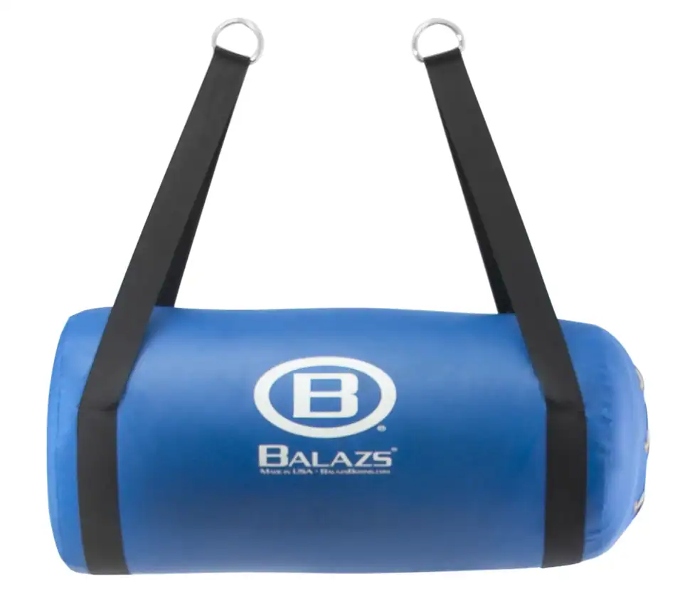 Balazs® Professional Uppercut Bags are made from 18-ounce vinyl-coated nylon reinforced canvas and are stuffed with a non-cotton rag material that packs better and settles less than traditional cotton rag stuffing. Balazs® bags have a firm but giving feel. The nylon straps for D-ring support is made of the same high strength nylon material used in seat belts. Balazs® Uppercut Bags are excellent for practicing hooks, jabs and uppercuts and are available in blue and black.